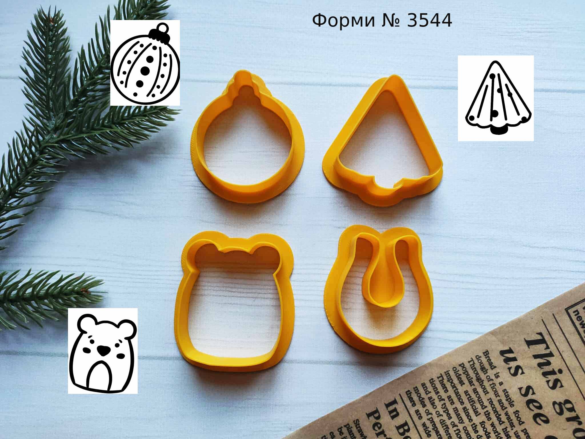 Формы № 3544 елочка, мишка, подкова и елочный шар для пряников.