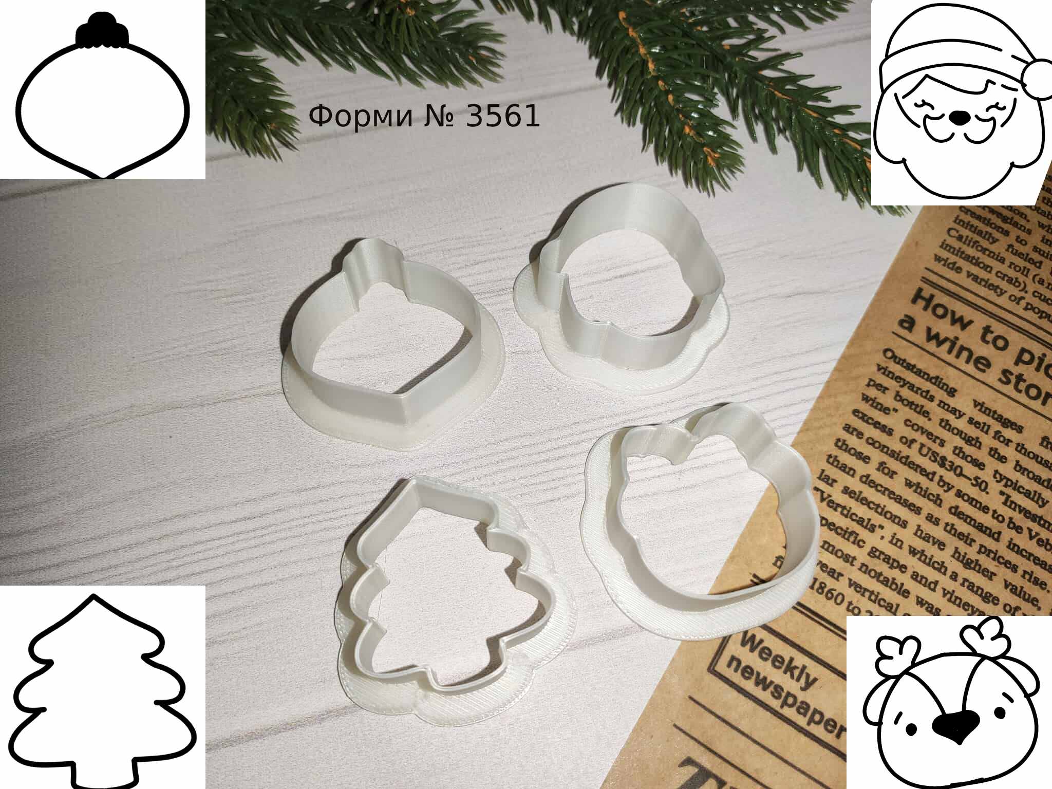 Формы № 3561 елочная игрушка, Санта, елочка и олень для пряников.