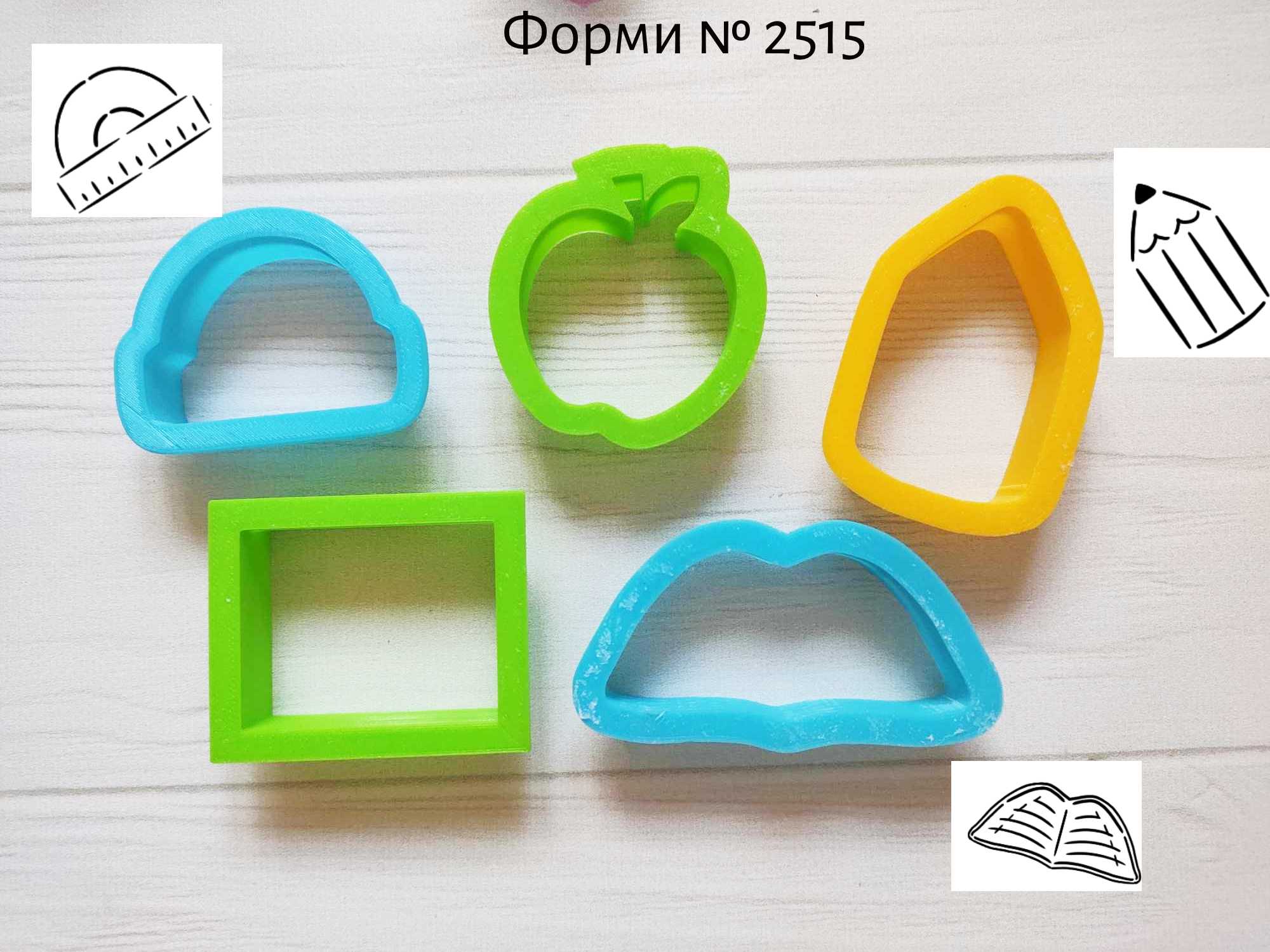 Формы № 2515 школьные принадлежности и яблоко для пряников.