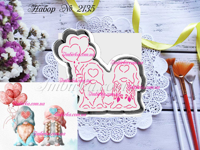 Набор № 2135 гномы с воздушными шарами в форме сердец для пряников.