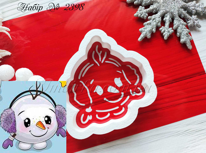 Набор № 2398 снеговичок в теплых наушниках для пряников.