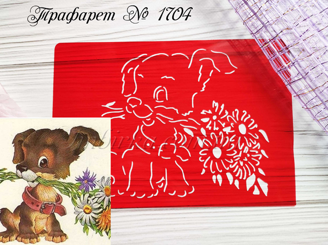 Трафарет № 1704 щенок с букетом для пряников.