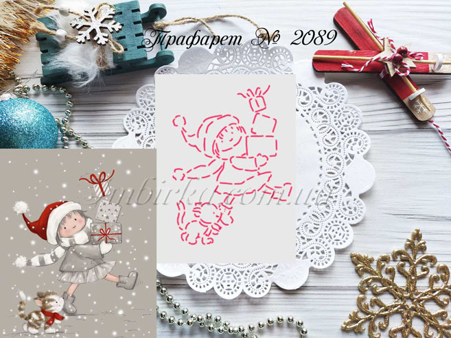 Трафарет № 2089 девочка с подарками для пряников.