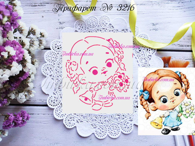 Трафарет № 3216 девочка с колокольчиком для пряников.