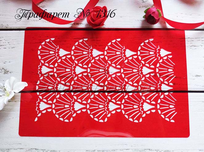Материал трафарета гибкий прозрачный пластик. Такой трафарет легко мыть, использовать в работе, и нет проблем в хранении. Но их нельзя мыть в посудомоечной машине или горячей воде, чтобы избежать деформации.