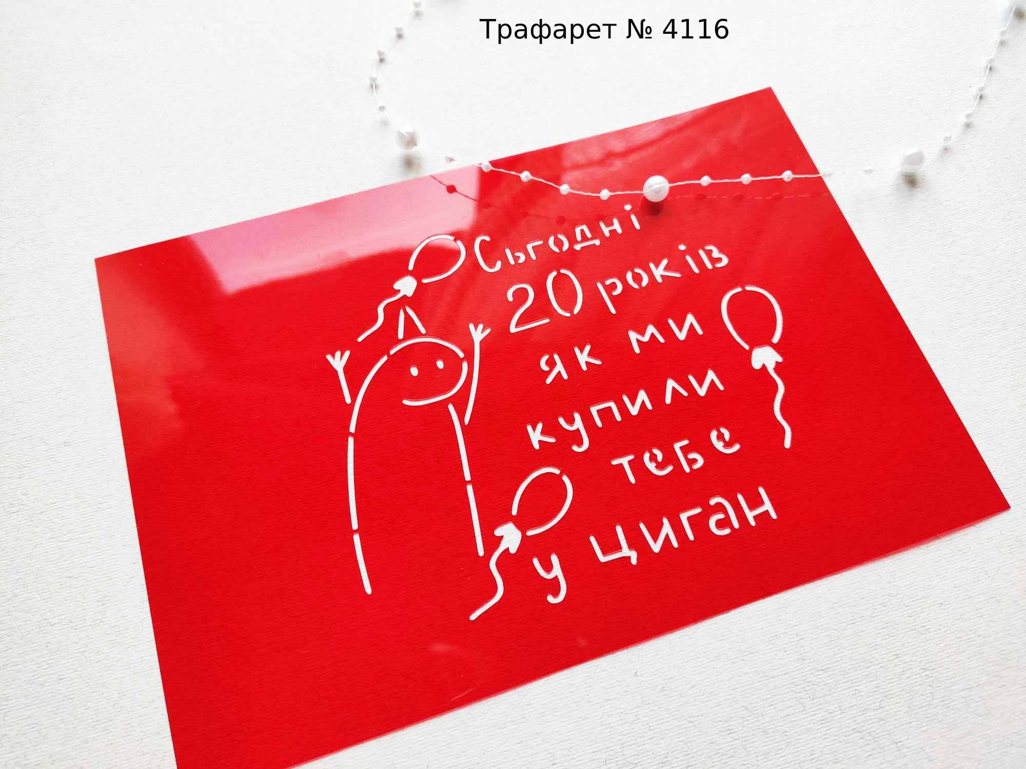Трафарет № 4116 Сьогодні 20 років як ми купили тебе у циган для бенто-торта.