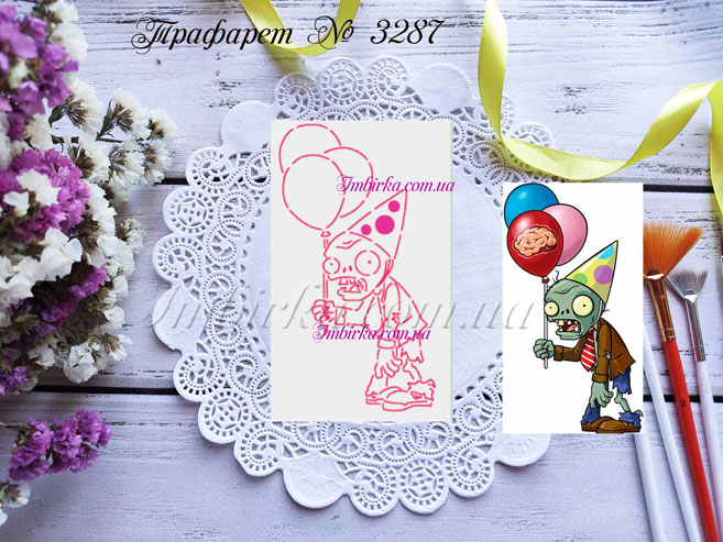 Трафарет № 3287 зомби с воздушными шариками для пряников.