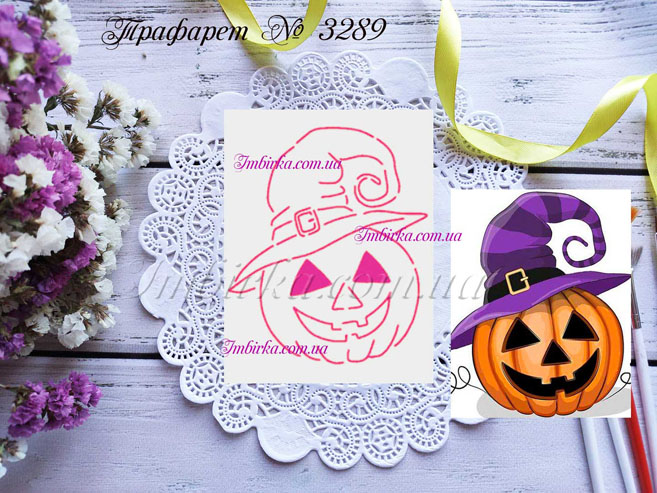 Трафарет № 3289 тыква в шляпе для пряников.