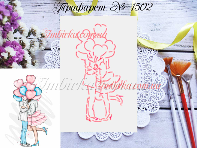 Трафарет № 1502 влюбленная пара с воздушными шариками для пряников.