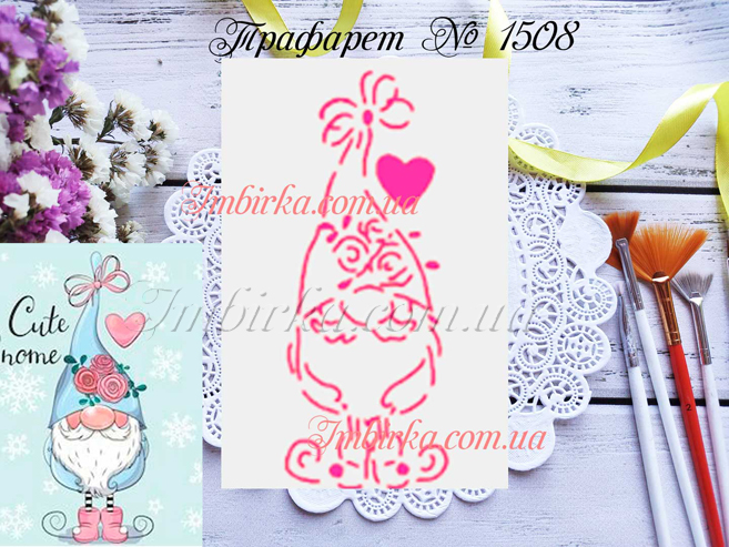 Трафарет № 1508 гном в шапочке с розочками для пряников.