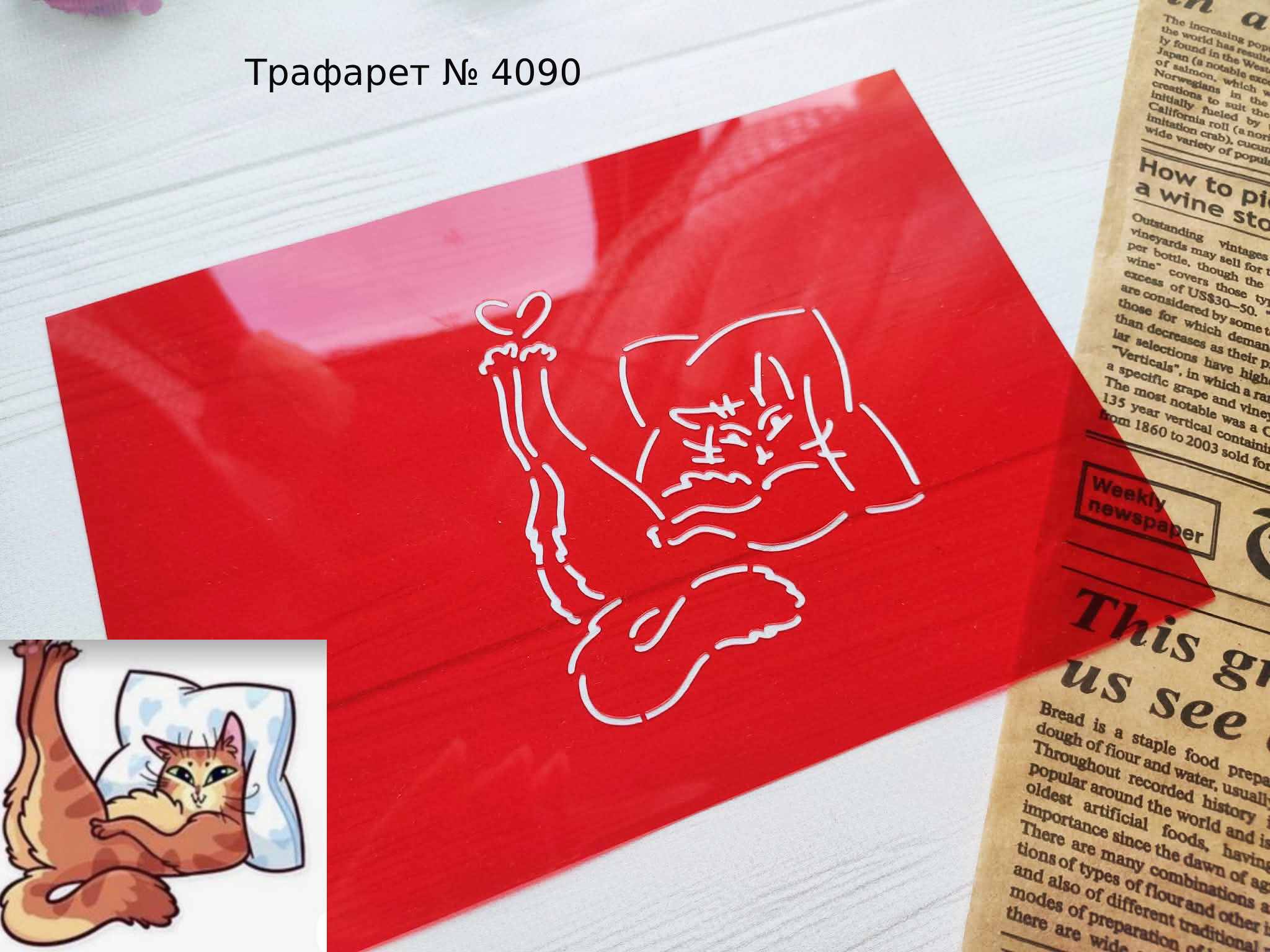 Трафарет № 4090 кошечка на подушке