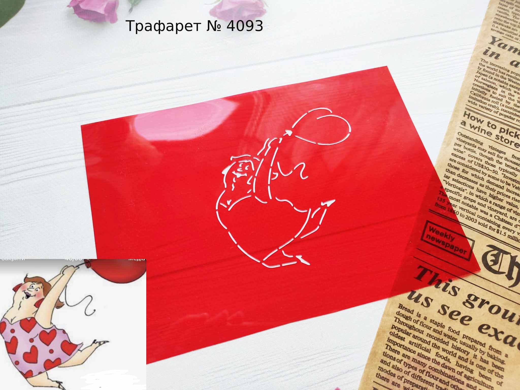 Трафарет № 4093 женщина с воздушным шаром сердцем для пряников.