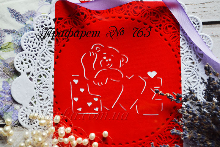 Трафарет № 763 мишка машет лапкой возле Love для пряников.