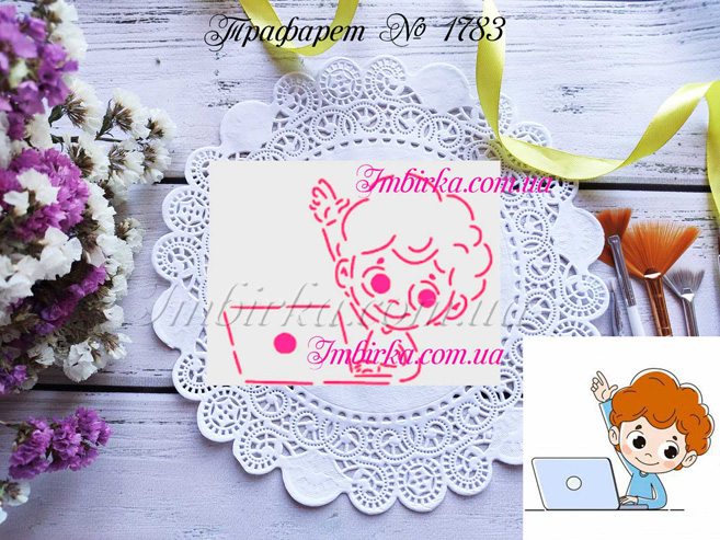 Трафарет № 1783 мальчик с ноутбуком для пряников.