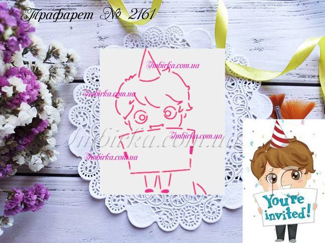 Трафарет № 2161 мальчик с табличкой для пряников.