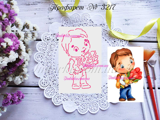 Трафарет № 3217 мальчик с цветами