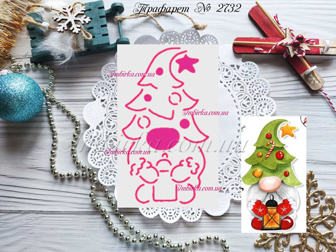 Трафарет № 2732 гном в шапочке елочке для пряников.