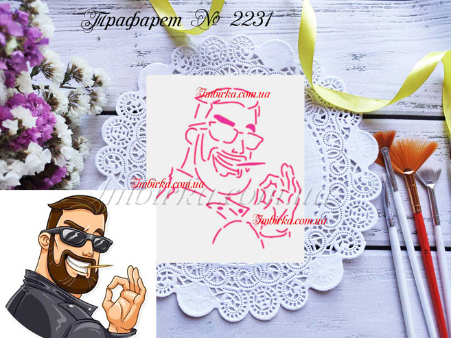 Трафарет № 2231 брутальный мужчина для пряников.