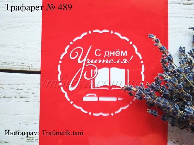 Трафарет № 489 с днем учителя с ручкой и тетрадью для пряников.