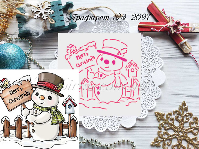 Трафарет № 2097 снеговик с табличкой для пряников.