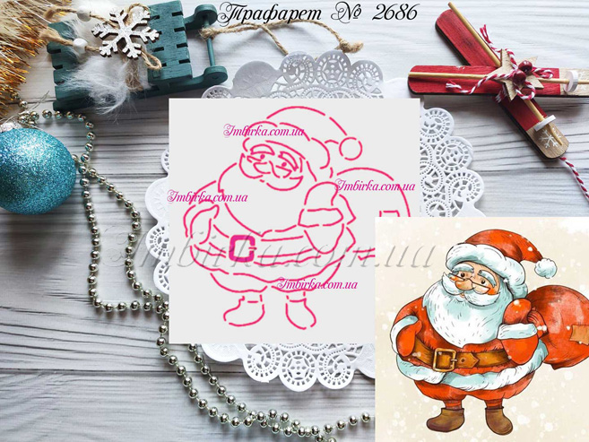 Трафарет № 2686 Дед Мороз с мешком подарков 3 для пряников.