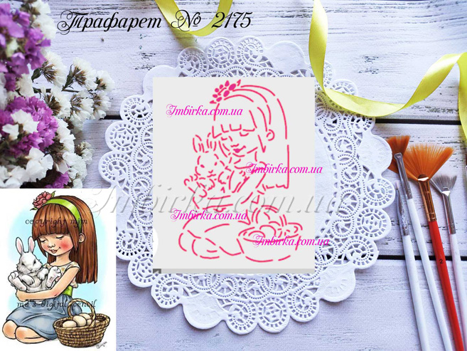 Трафарет № 2175 девочка с кроликом и корзинкой для пряников.