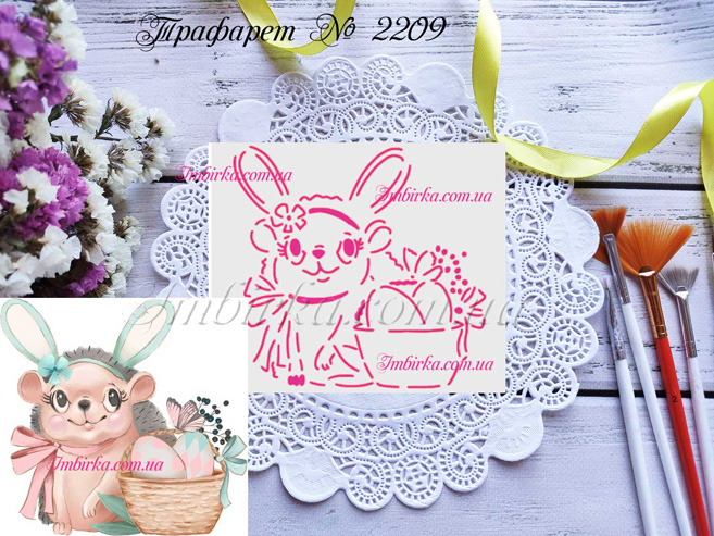 Трафарет № 2209 ежик с пасхальной корзинкой для пряников.