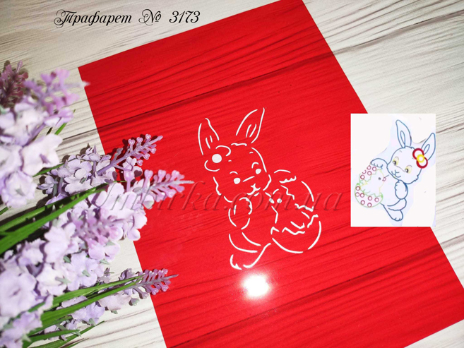 Трафарет № 3173 зайчик с вылупившимся цыпленком для пряников.
