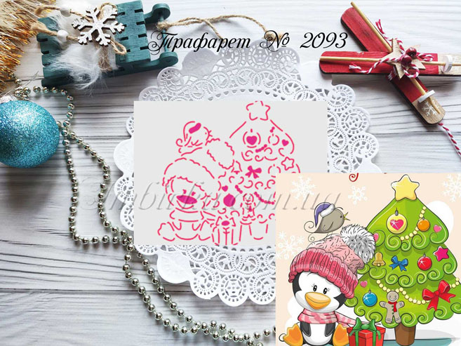 Трафарет № 2093 пингвин с елочкой