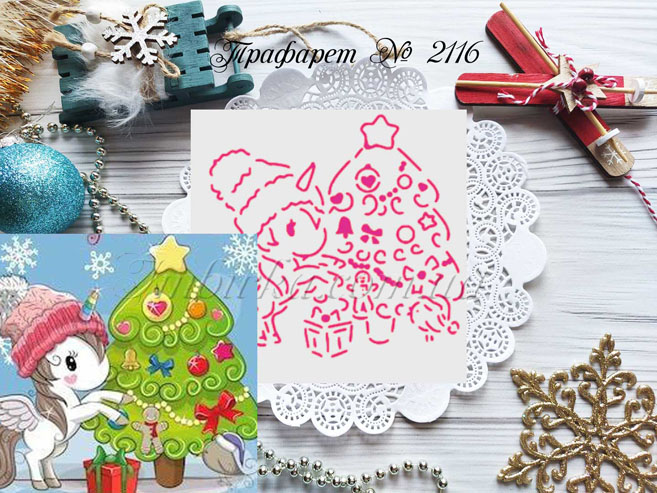 Трафарет № 2116 единорожка возле елочки