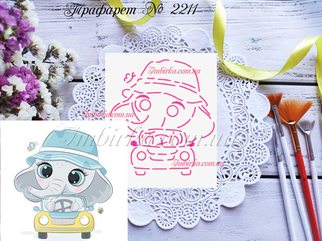 Трафарет № 2211 слоник на машинке для пряников.