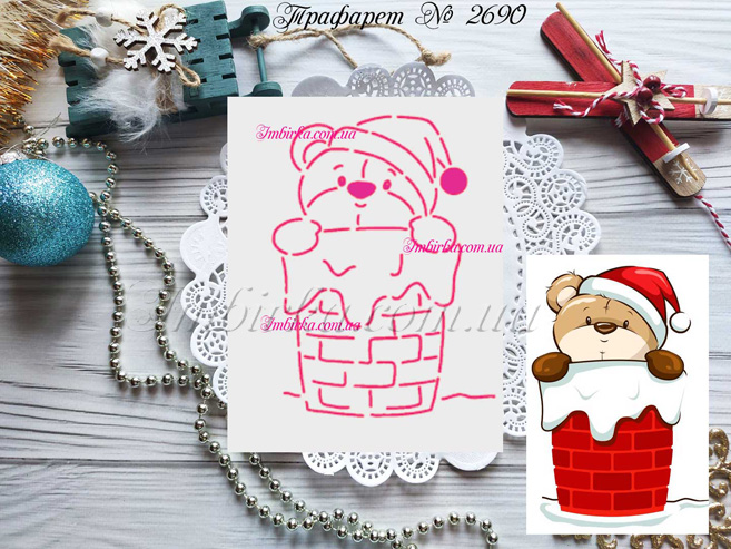 Трафарет № 2690 мишка в дымоходе для пряников.