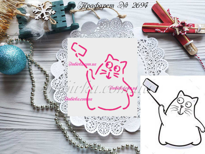 Трафарет № 2694 кот с телефоном для пряников.