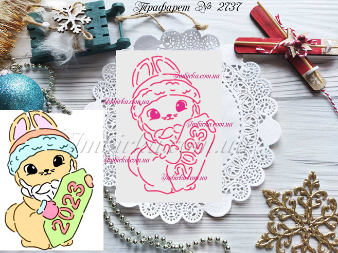Трафарет № 2737 кролик с табличкой 2023 для пряников.