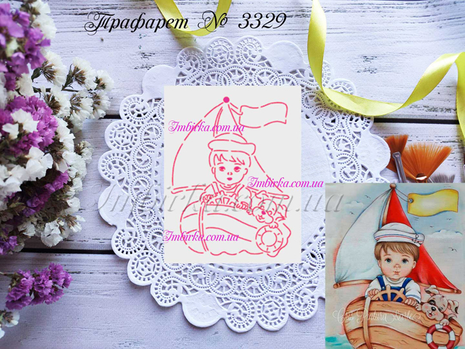 Трафарет № 3329 мальчик с песиком в лодке для пряников.
