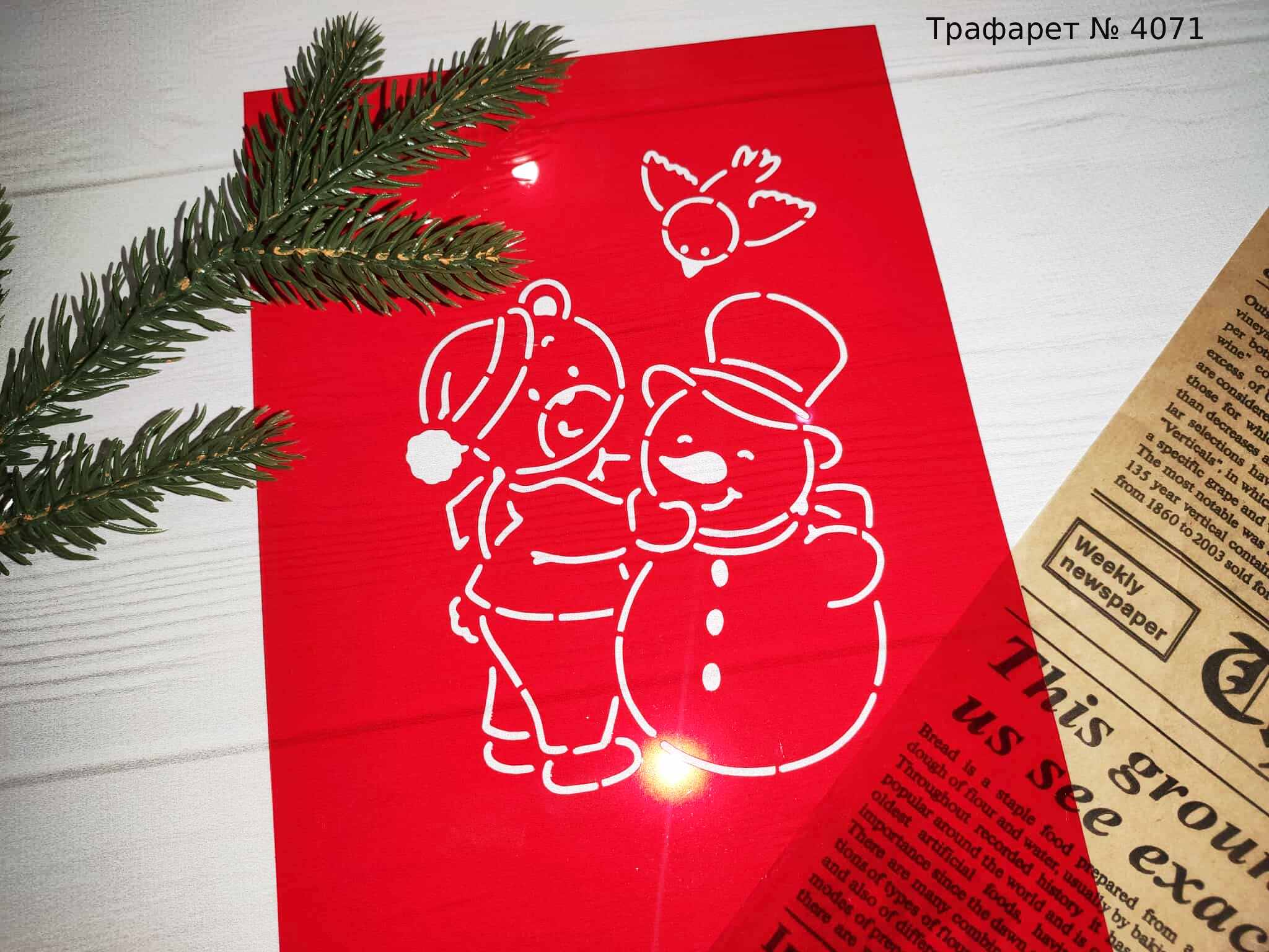 Трафарет № 4071 мишка и снеговик для пряников.