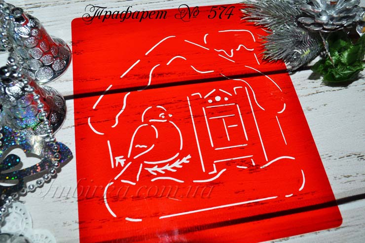 Трафарет № 574 домик со снегирем для пряников.